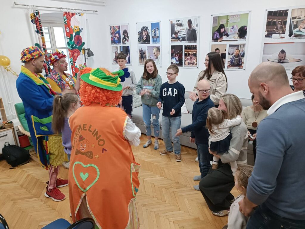 Program je započeo okruglim stolom s našom edukacijskom rehabilitatoricom, gdje smo zajedno razgovarali o važnosti podrške i razvoja kroz terapiju. Nastavili smo u veselom tonu uz klaunicu Karmelino i njezine pomagače iz Udruge za bolji svijet, koji su nas još jednom razveselili i nasmijali – na čemu im od srca zahvaljujemo.